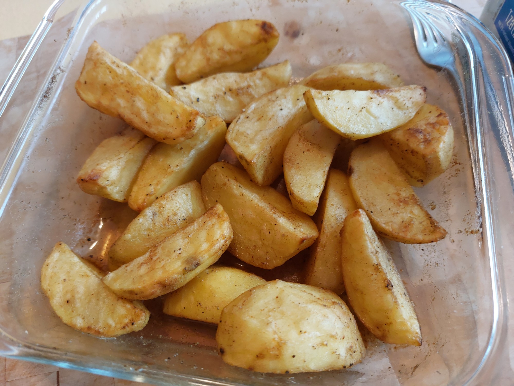 KartoffelspaltenDie Kartoffeln waren wirklich lecker … Sicher, statt des Rosmarin-Pulvers wären ein paar Nadeln direkt vom Strauch besser gewesen. Aber für’s Salz habe ich ja auch keine eigene Saline.