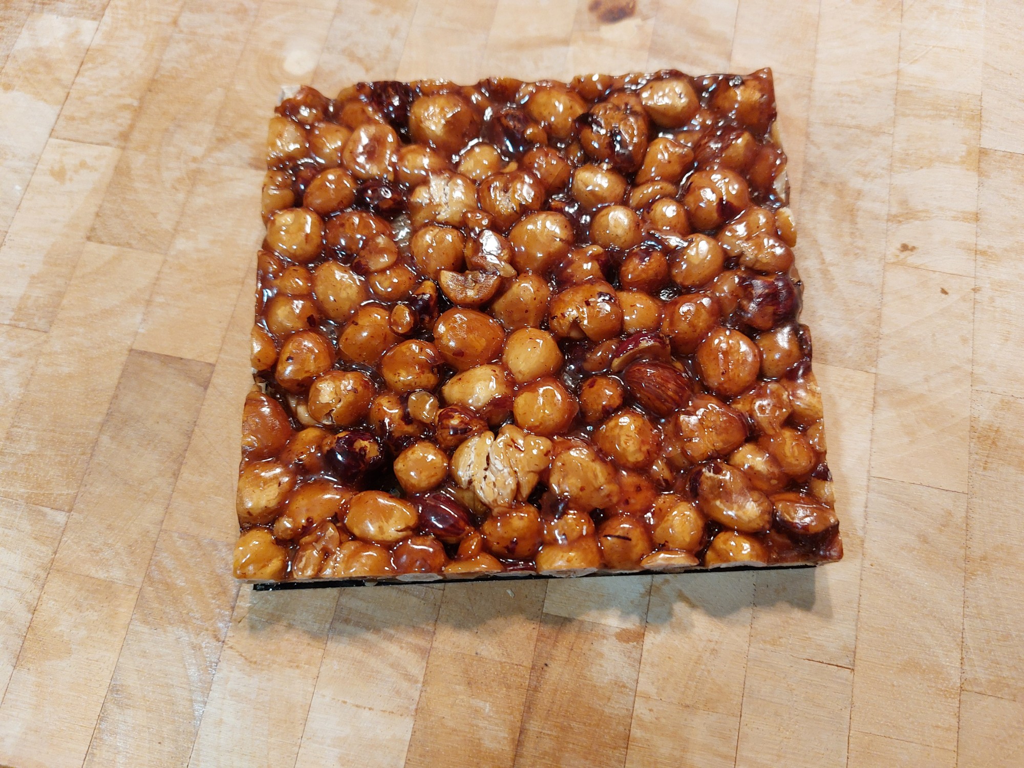 Ihr kennt sicher diese quadratische Schokolade mit den ganzen Haselnüssen drin. Naja, zumindest steht’s so drauf. Sowas gibt’s auch ohne Schokolade aber mindestens genauso viel Zucker, der allerdings karamellisiert ist. Das läuft dann unter Haselnusskrokant. Schweinesüß, aber ich mag Haselnüsse sehr. Auch in Karamell.